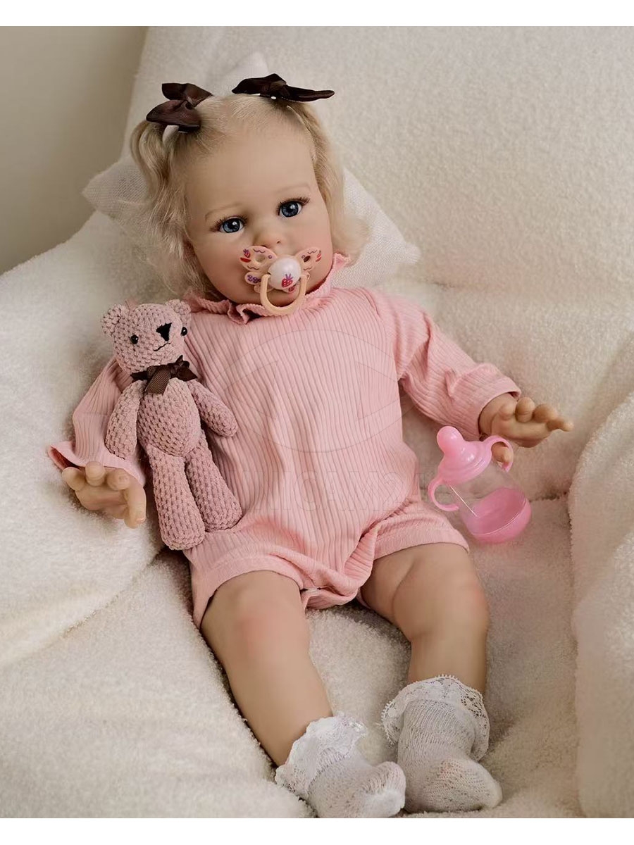 Кукла реборн Эльза высотой 55 см выполнена в реалистичном стиле с высокой степенью детализации. Её тело мягконабивное, изготовлено из текстиля с наполнителем, благодаря чему она приятна на ощупь и удобно ложится в руки. Ручки и ножки выполнены из винил-силикона, что придаёт внешнему виду куклы ещё большее сходство с настоящим младенцем.